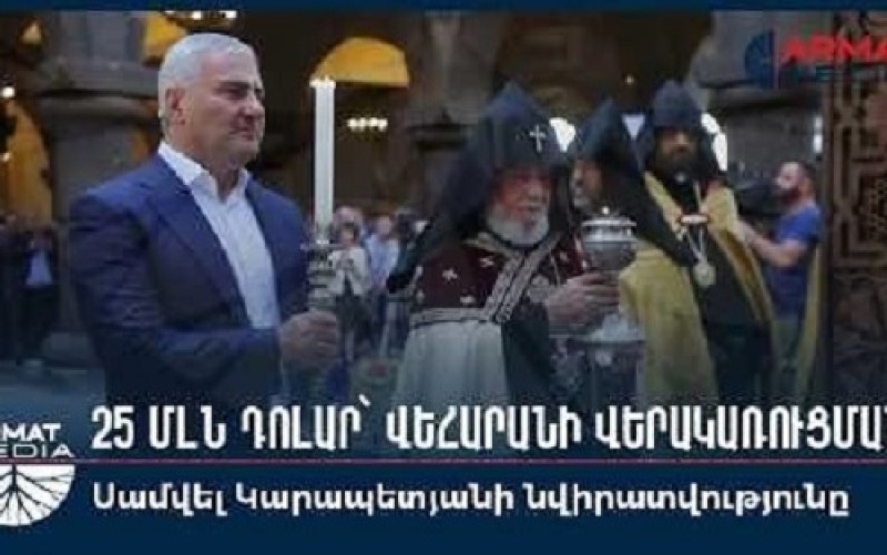 25 մլն դոլար Սամվել Կարապետյանի և Կարապետյան ընտանիքի կողմից՝ վեհարանի և հանդիսությունների սրահի կառուցման համար 25 մլն դոլար` Էջմիածնի կաթողիկոսական վեհարանի վերակառուցման և կից հանդիսությունների սրահի կառուցման համար։