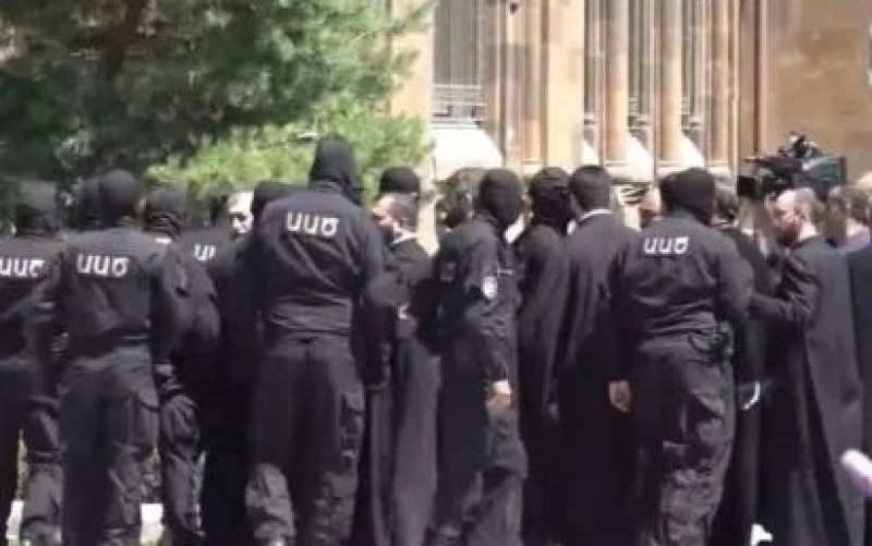 Նշենք, որ բազմաթիվ դիմակավորված ԱԱԾ–ականներ քիչ առաջ մտել են Մայր Աթոռ Սուրբ Էջմիածնի վեհարան։ Նրանք եկել են ձերբակալելու Շիրակի թեմի առաջնորդ Միքայել արքեպիսկոպոս Աջապահյանին։
