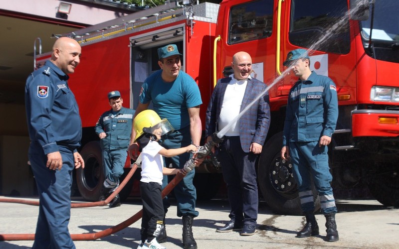 Մանուկներին դիմավորեցին ստորաբաժանման աշխատակիցները, ովքեր սիրով ներկայացրին հրշեջ-փրկարարների առօրյան ու մասնագիտական պատասխանատու աշխատանքը։