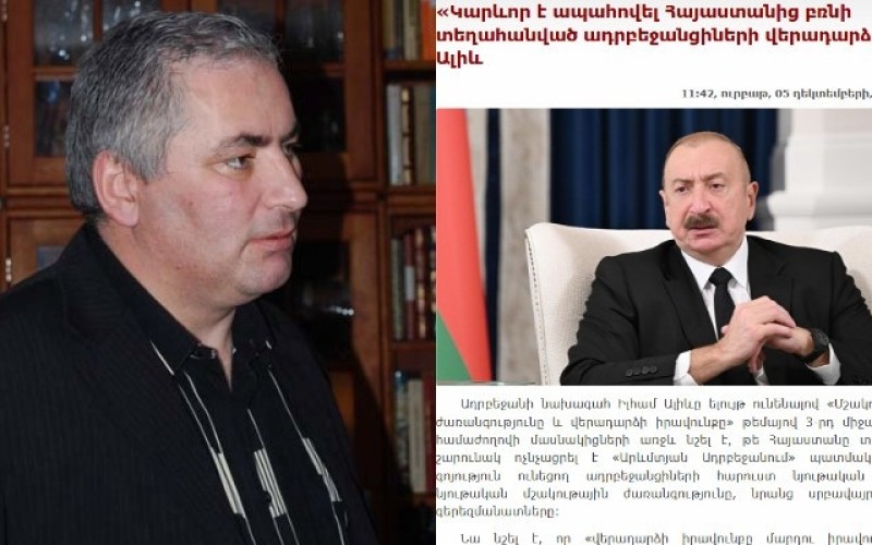 Ադրբեջանի նախագահ Իլհամ Ալիևը Բաքվում անցկացվող «Մշակութային ժառանգություն և վերադարձի իրավունք» միջազգային համաժողովի մասնակիցներին ուղղված ուղերձում հայտարարել է․ «Այսօր կարևոր է ակտիվացնել ջանքերը՝ ապահովելու Հայաստանից բռնի տեղահանված ադրբեջանցիների վերադարձը։ Ի վերջո, վերադարձի իրավունքն մարդու իրավունքների հիմնարար սկզբունքներից մեկն է»։ Ալիևը հավելել է․ «Այս իրավունքի ապահովումը նշանակում է ոչ միայն ֆիզիկական վերադարձ հայրենիք, այլև հոգևոր ամբողջականության, մշակութային ժառանգության և հասարակության պատմական հիշողության վերականգնում»: Նա Հայաստանին մեղադրել է, այսպես կոչված, «Արևմտյան Ադրբեջան»-ի տարածքում ադրբեջանցիների հարուստ նյութական և ոչ նյութական մշակութային ժառանգությունը ոչնչացնելու մեջ։ Մինչ Նիկոլ Փաշինյանը, ՔՊ-ական մյուս գործիչները հայաստանցիներին, հայ ժողովրդին խաբում, նրա գիտակցությունը թմրեցնում են Ադրբեջանի հետ մոտալուտ, կայուն խաղաղությամբ, Իլհամ Ալիևը չի թաքցնում Հայաստան պետությունը ոչնչացնելու ծրագիրը հետևողական ձևով իրականացնելու իր մտադրությունը։ «Արևմտյան Ադրբեջան ադրբեջանցիների վերադարձը» այն մեծ ականն է, որը կպայթեցնի Հայաստանի պետականությունը։ Հիմա իշխանության կերակրատաշտից առատորեն սնվող «սատանայի փաստաբանները» Հայաստանում կանցնեն գործի ու կփորձեն հանրությանը համոզել, որ նույն այդ ուղերձում Ալիևը նշել է․ «2025թ․ օգոստոսի 8-ին Վաշինգթոնում Ադրբեջանի և Հայաստանի միջև հանդիպումը Ամերիկայի Միացյալ Նահանգների միջնորդությամբ, համատեղ հռչակագրի ստորագրումը և խաղաղության համաձայնագրի նախագծի նախաստորագրումը հույս և վստահություն են ներշնչում երկու ժողովուրդների ապագա համակեցության նկատմամբ»»։