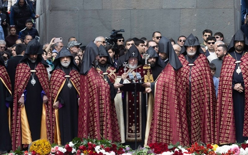 Ապրիլի 24-ին Ն.Ս.Օ.Տ.Տ. Գարեգին Երկրորդ Ծայրագույն Պատրիարք և Ամենայն Հայոց Կաթողիկոսը Մայր Աթոռ Սուրբ Էջմիածնի միաբանների ուղեկցությամբ այցելեց Ծիծեռնակաբերդի հուշահամալիր՝ ոգեկոչելու Հայոց Ցեղասպանության սուրբ նահատակների հիշատակը: