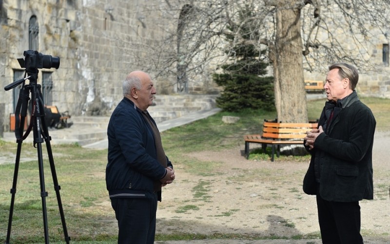 Տաթևի վանական համալիրում, ուր նույնպես տեղի էին ունենում ֆիլմի նկարահանումները, նոյեմբերի 29-ին հանդիպեցինք ճանաչված դերասանին և ճեպազրույց ունեցանք: