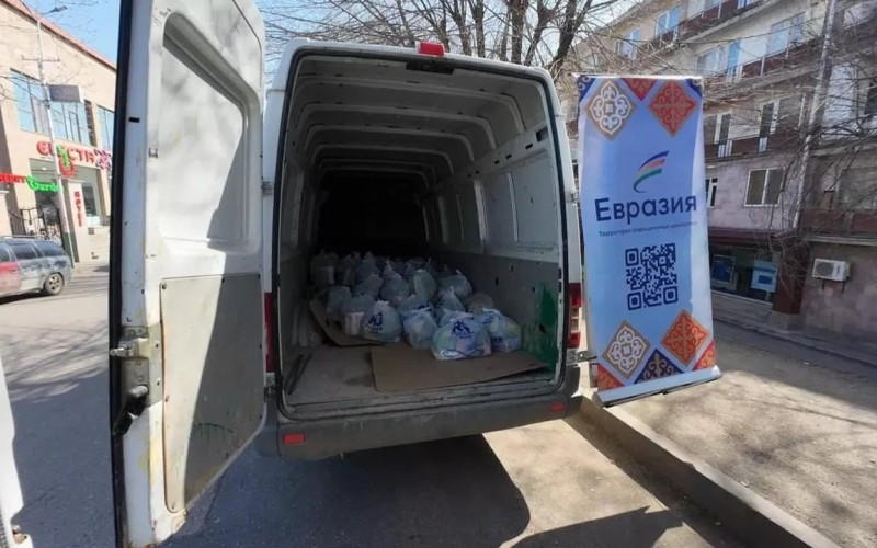 Լեռնային Ղարաբաղից տեղահանվածներին աջակցող մարդասիրական ակցիան իրականացնում է «Եվրասիա» ՀԿ–ն` «Ռուսաստանի մարդասիրական առաքելություն» ՀԿ–ի հետ համատեղ, «Ռոսսոտրուդնիչեստվոյի» աջակցությամբ։