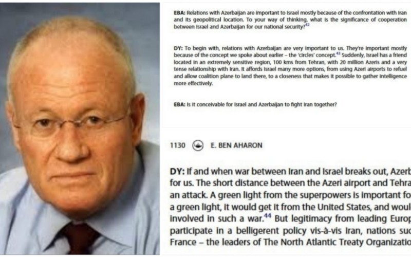 Քանի որ այս գիշեր ականատես եղանք Իրանի վրա Իսրայելի աննախադեպ հարձակման և մեկնարկել է պատերազմ, շատ կարևոր է այստեղ մեջբերել Ադրբեջանի մասին Իսրայելի ՄՈՍԱԴ-ի 8-րդ տնօրեն Դանի Յաթոմի՝ 2023թ. հարցազրույցից մի հատված, որը լույս է տեսել Intelligence and National Security հեղինակավոր գիտական ամսագրում՝ ‘Profiles in intelligence’: an interview with 8th Mossad chief Danny Yatom վերնագրով։