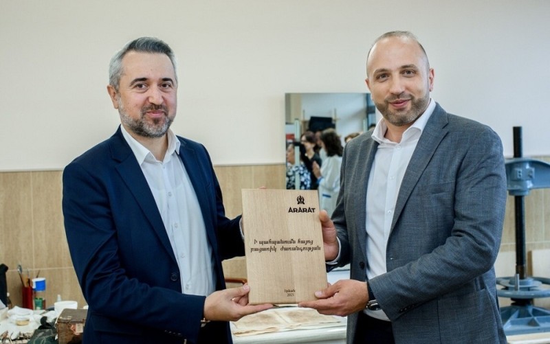 2025 թվականի մայիսի 6-ին Երևանի կոնյակի գործարանի կողմից Մեսրոպ Մաշտոցի անվան հին ձեռագրերի գիտահետազոտական ինստիտուտին հանձնվեցին գործարանի տակառագործների պատրաստած կաղնեփայտե հատուկ սալիկներ, որոնք անհրաժեշտ են հին ձեռագրերի կազմերի պահպանման համար։ Այս համատեղ նախաձեռնության համաձայն՝ Երևանի կոնյակի գործարանը հանձնառություն է ստանձնում հետայսու աջակցել հին ձեռագրերի վերականգնմանը նման ձևաչափով։