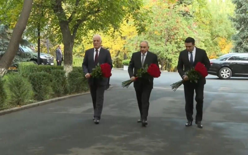 «Արմենպրես»-ի փոխանցմամբ՝ ՀՀ նախագահ Վահագն Խաչատուրյանը, վարչապետ Նիկոլ Փաշինյանը և Ազգային ժողովի նախագահ Ալեն Սիմոնյանը ծաղիկներ են դրել Ազգային ժողովի բակում Հոկտեմբերի 27-ի ահաբեկչության զոհերի հիշատակին նվիրված հուշարձանին։