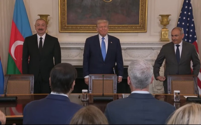 Ինչպես հաղորդում է «Արմենպրես»-ի թղթակիցը Վաշինգտոնից, ՀՀ վարչապետը, ԱՄՆ նախագահն ու Ադրբեջանի նախագահը համատեղ հռչակագիրը ստորագրեցին օգոստոսի 8-ին Սպիտակ տանը կայացած եռակողմ հանդիպումից հետո։