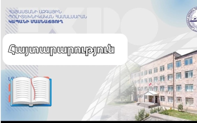 Հայաստանի ազգային պոլիտեխնիկական hամալսարանի Կապանի մասնաճյուղը Կապանի լեռնահարստացման կոմբինատի ֆինանսական աջակցությամբ 2026 թվականի դիմորդների համար ԲՈՒՀ-ի ընդունելության ծրագրով կազմակերպում է անվճար 10-ամսյա նախապատրաստական դասընթացներ՝ «Մաթեմատիկա» և «ֆիզիկա» առարկաներից: