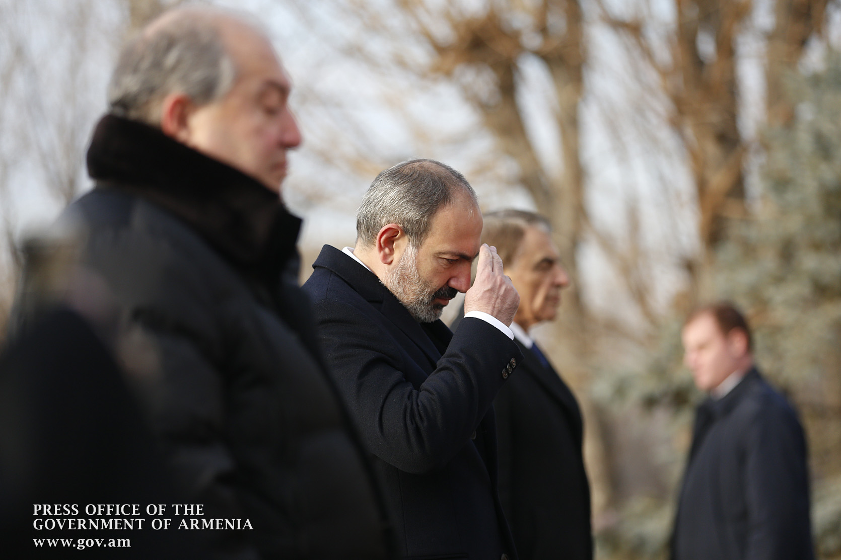 Հանրապետության նախագահ Արմեն Սարգսյանն այսօր Ն.Ս.Օ.Տ.Տ. Գարեգին Երկրորդ Ծայրագույն Պատրիարք և Ամենայն Հայոց Կաթողիկոսի, վարչապետի պաշտոնակատար Նիկոլ Փաշինյանի հետ, ԱԺ նախագահի և Հանրապետության բարձրագույն ղեկավարության ուղեկցությամբ այցելել է «Եռաբլուր» զինվորական պանթեոն՝ հարգանքի տուրք մատուցելով Հայրենիքի անկախության համար իրենց կյանքը զոհաբերած հայորդիների հիշատակին: