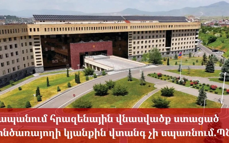 «Նախնական տվյալներով՝ զինծառայողը թեթև մարմնական վնասվածք է ստացել զենքի օգտագործման կանոնների խախտման հետևանքով, նրա առողջությանը և կյանքին վտանգ չի սպառնում։ Զինծառայողի բուժումը կազմակերպվել է կայազորային հոսպիտալում, և Երևանի Կենտրոնական կլինիկական զինվորական հոսպիտալ տեղափոխելու անհրաժեշտություն չի առաջացել»,- ասվում է հաղորդագրությունում։