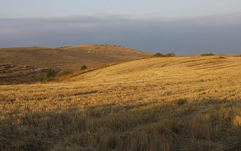 ԿԽՄԿ-ի Գորիսի ենթապատվիրակության տնտեսական անվտանգության ներկայացուցիչ Հարություն Հարությունյանը մատնացույց է անում մուգ ոսկեգույն դաշտը: Մայրամուտին դեղինն ավելի մուգ է թվում: Նախկինում սա երիցուկների դաշտ էր, իսկ հիմա՝ հացահատիկի: Մոտ երկու շաբաթ առաջ են բերքը հավաքել: