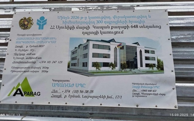 Կապանի Սյունիք թաղամասի դպրոցի հին ուսումնական շենքում ընթանում են ուսումնական պարապմունքները, իսկ կողքին կառուցվում է նոր շենքը, որը նախատեսված է 144 երեխայի համար, այդ թվում՝ 40-ը՝ մանկապարտեզի։ Դպրոցական հին մասնաշենքը գտնվում էր վթարային վիճակում և տարիներ ի վեր չէր նորոգվել։