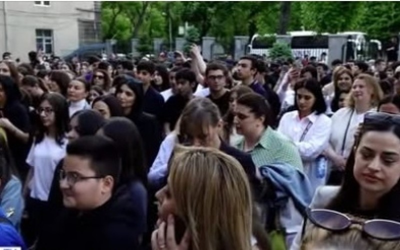 Պուշկինի անվան դպրոցի աշակերտներն ու ծնողները հավաքվել են դպրոցի բակում. սպասում են պաշտոնյաներին