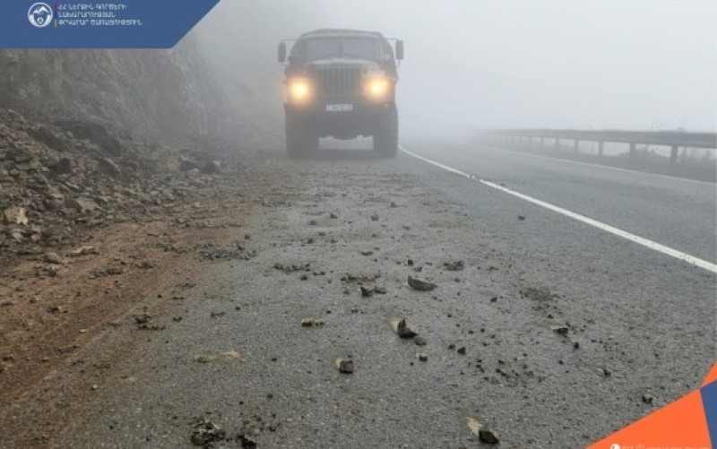 Փրկարարները հեռացրել են թափված քարերը դարձնելով ավտոճանապարհը երկկողմանի երթևեկելի։