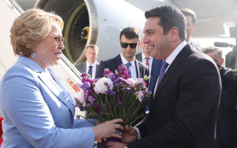Վալենտինա Մատվիենկոյին «Զվարթնոց» օդանավակայանում դիմավորել է ՀՀ ԱԺ նախագահ Ալեն Սիմոնյանը: