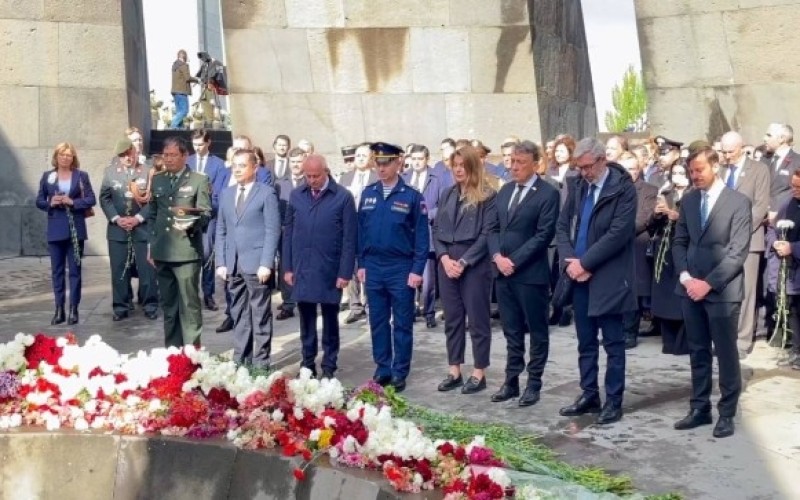 Նրանք ծաղկեպսակ են դրել Հայոց ցեղասպանության զոհերի հիշատակին նվիրված հուշակոթողի մոտ։