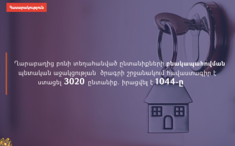 Ղարաբաղից բռնի տեղահանված ընտանիքների բնակարանային ապահովման պետական աջակցության ծրագրի շրջանակում առցանց դիմումների ընդունման գործընթացը շարունակվում է։