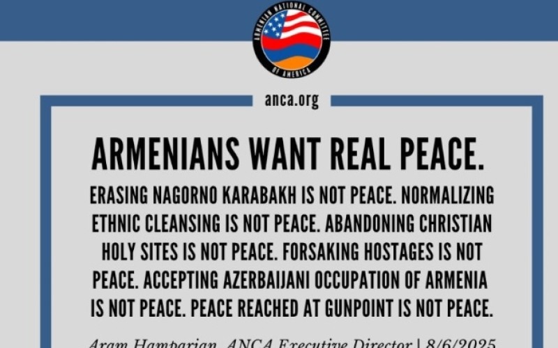 Հայ դատի Ամերիկայի հանձնախումբը Սպիտակ տանը նախատեսված՝ Հայաստանի և Ադրբեջանի միջև կայանալիք գագաթնաժողովի բոլոր մասնակիցներին կոչ է անում ձգտել սկզբունքային և տևական խաղաղության՝ հիմնված արդարության, պատասխանատվության, բռնի տեղահանված հայության վերադարձի, ինչպես նաև Հայաստանի անվտանգության ու ինքնիշխանության պահպանման վրա։ Այս մասին հաղորդագրություն է տարածել ՀՅԴ Բյուրոյի Հայ դատի կենտրոնական գրասենյակը։